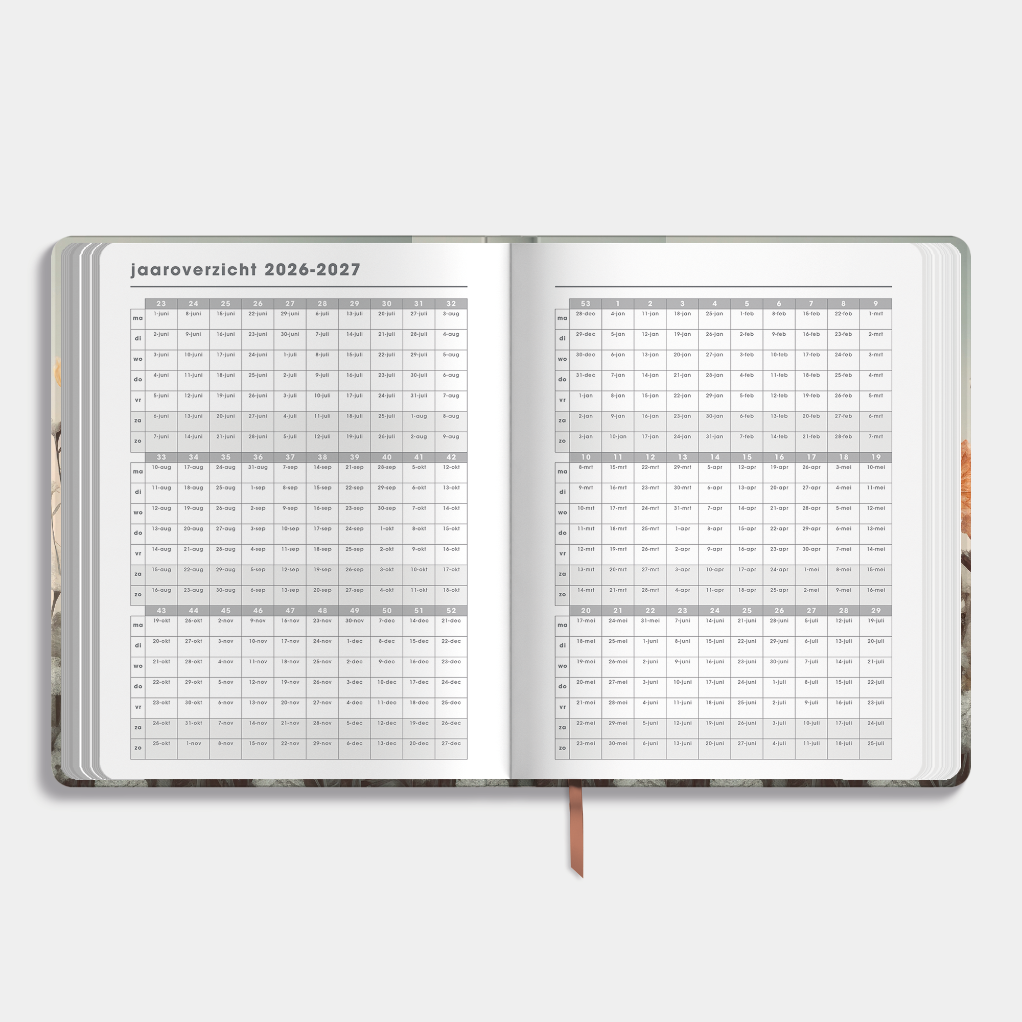 Op zoek naar een complete en overzichtelijke agenda 2026-2027 voor het onderwijs? Deze agenda 2026-2027 in groot ±A4-formaat combineert functionaliteit met een stijlvolle uitstraling. Met andere woorden: je organiseert moeiteloos al je lessen, planningen en administratie in één praktische agenda. De harde cover met veldbloemen in oranje en grijs geeft deze docentenagenda 2026-2027 een rustige en moderne look.
