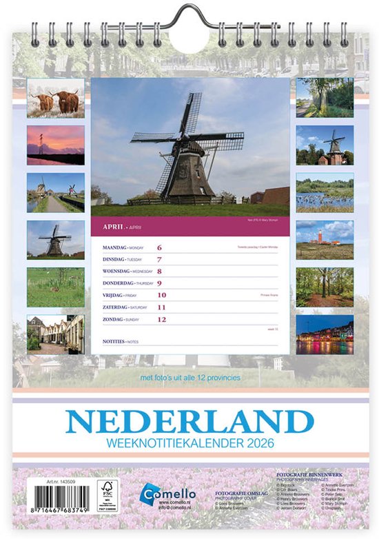 Bestelle den Niederlande WEEKnotice Kalender 2026 jetzt und plane deine Woche mit den schönsten Bildern der Niederlande!