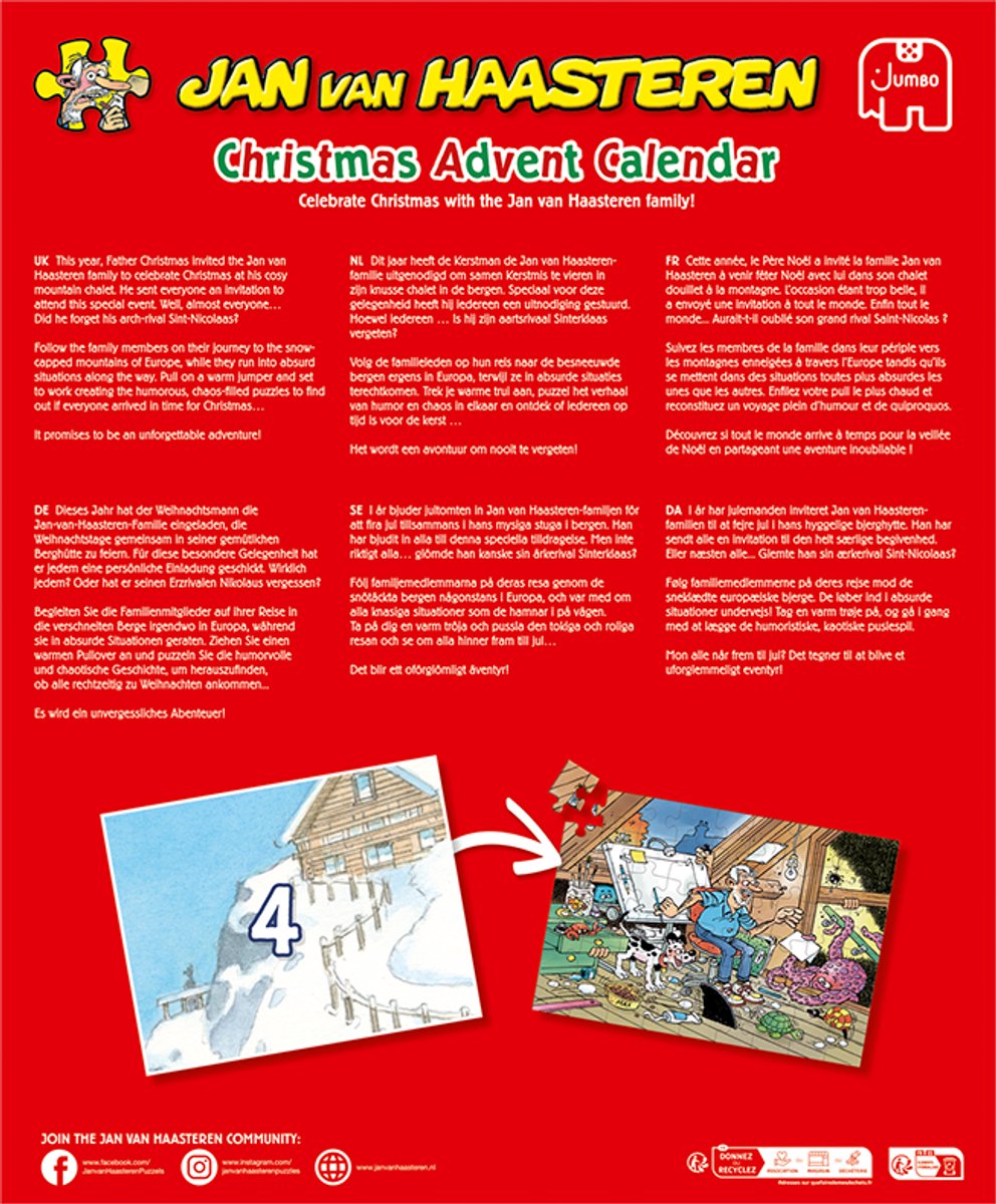 Der Jan van Haasteren Adventskalender mit 24 Puzzles mit 54 Teilen!