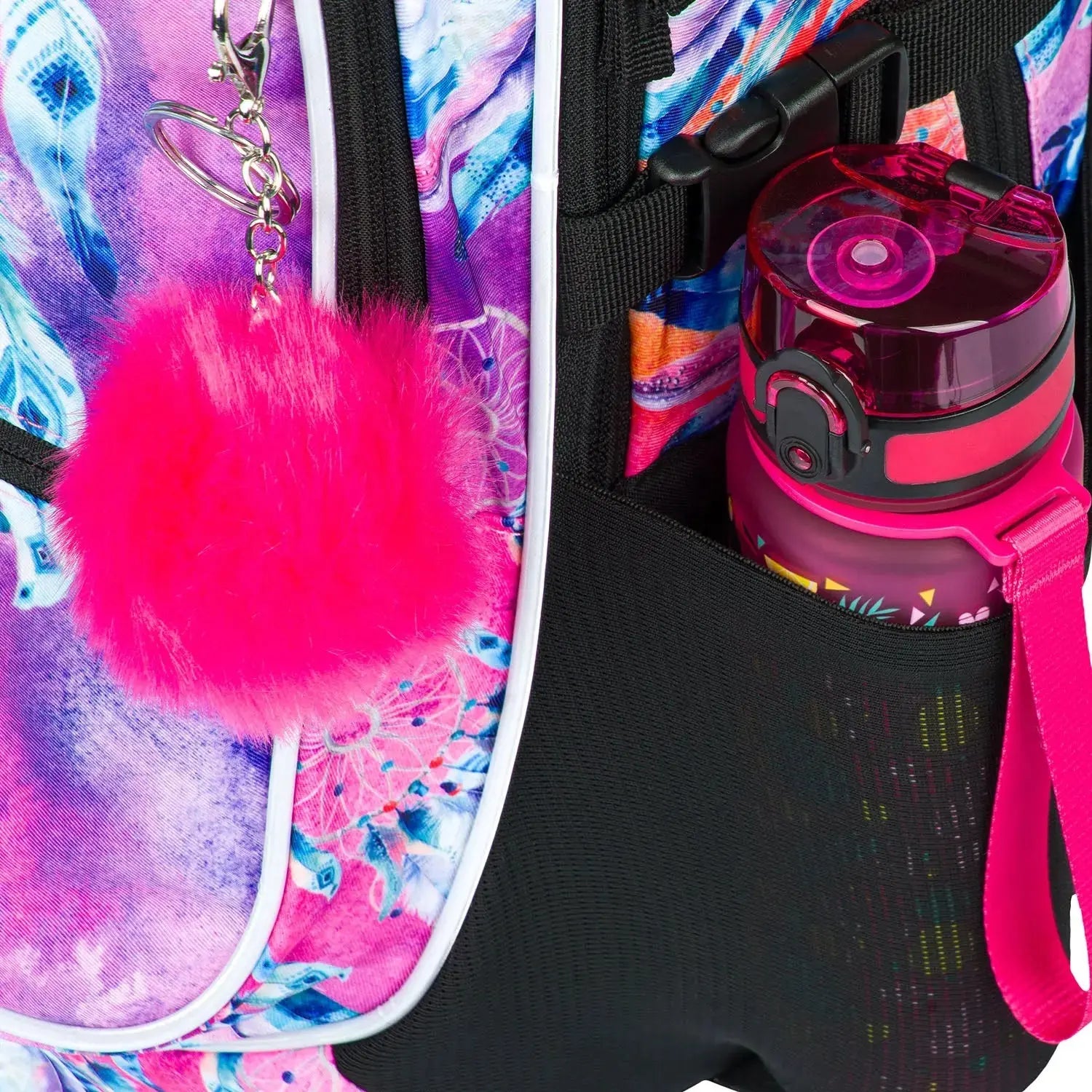 - Zijvakken: Mesh vakken voor drinkfles