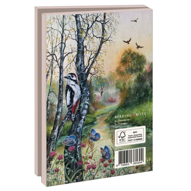 (2 x 5 verschillende motieven) met bijpassende witte enveloppen, overzichtelijk verpakt in een stijlvol mapje.