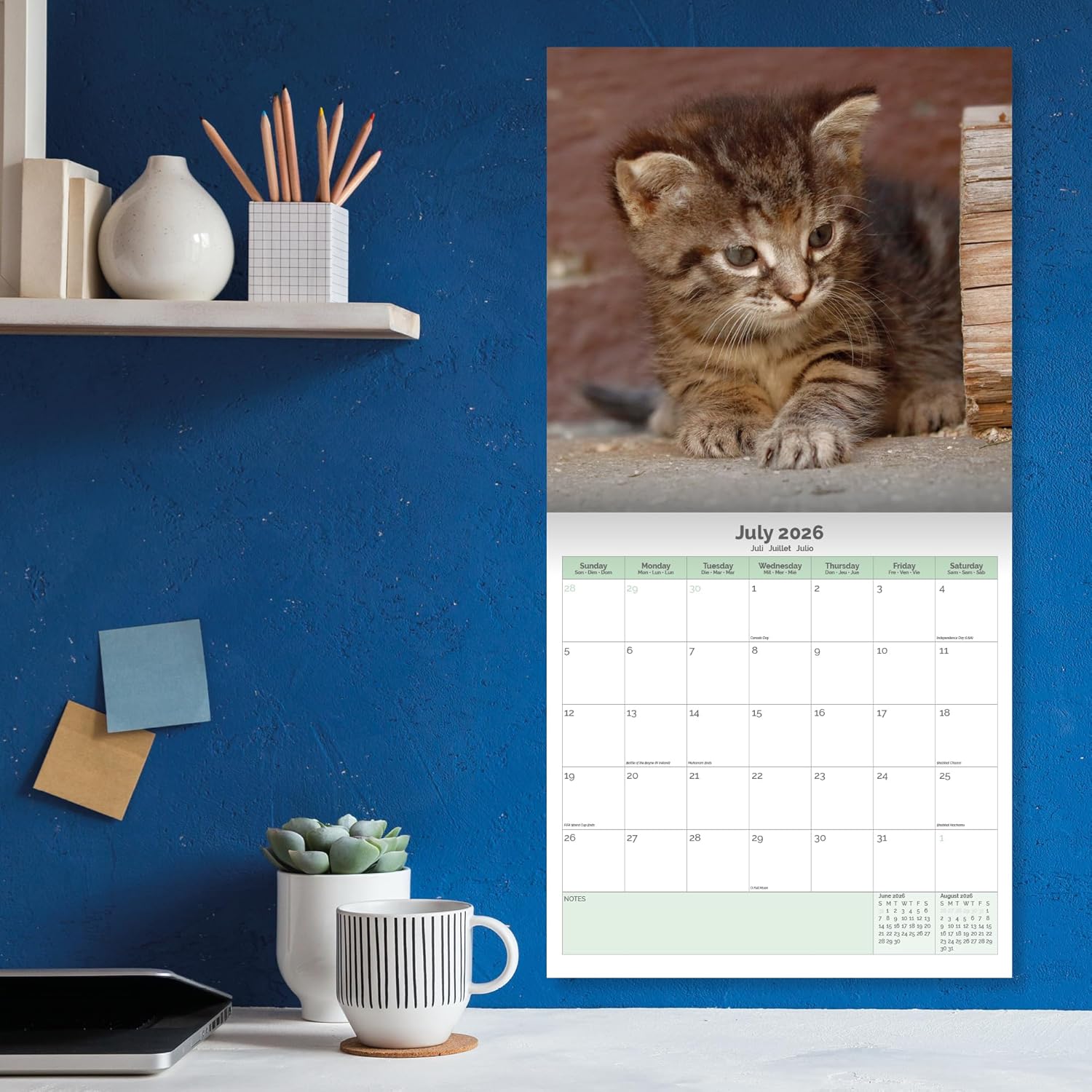 The Calendar starts in September 2024 and has from January 2025 to December 2025 a large picture of the Kittens with below them the available dates of the month with space for personal notes and birthdays. Some important holidays have already been added to the calendar. The texts on the Kittens 16 month calendar from Baker & Bray are printed in English. Unfolded, the calendar is approximately 30 x 60 cm with the image at the top and the dates of the month below. The calendar has a hole at the top so you can easily hang the calendar on a hook or nail. For example, in the kitchen, office or toilet.