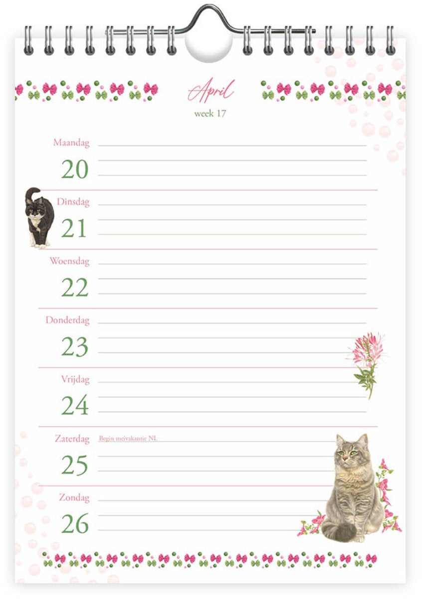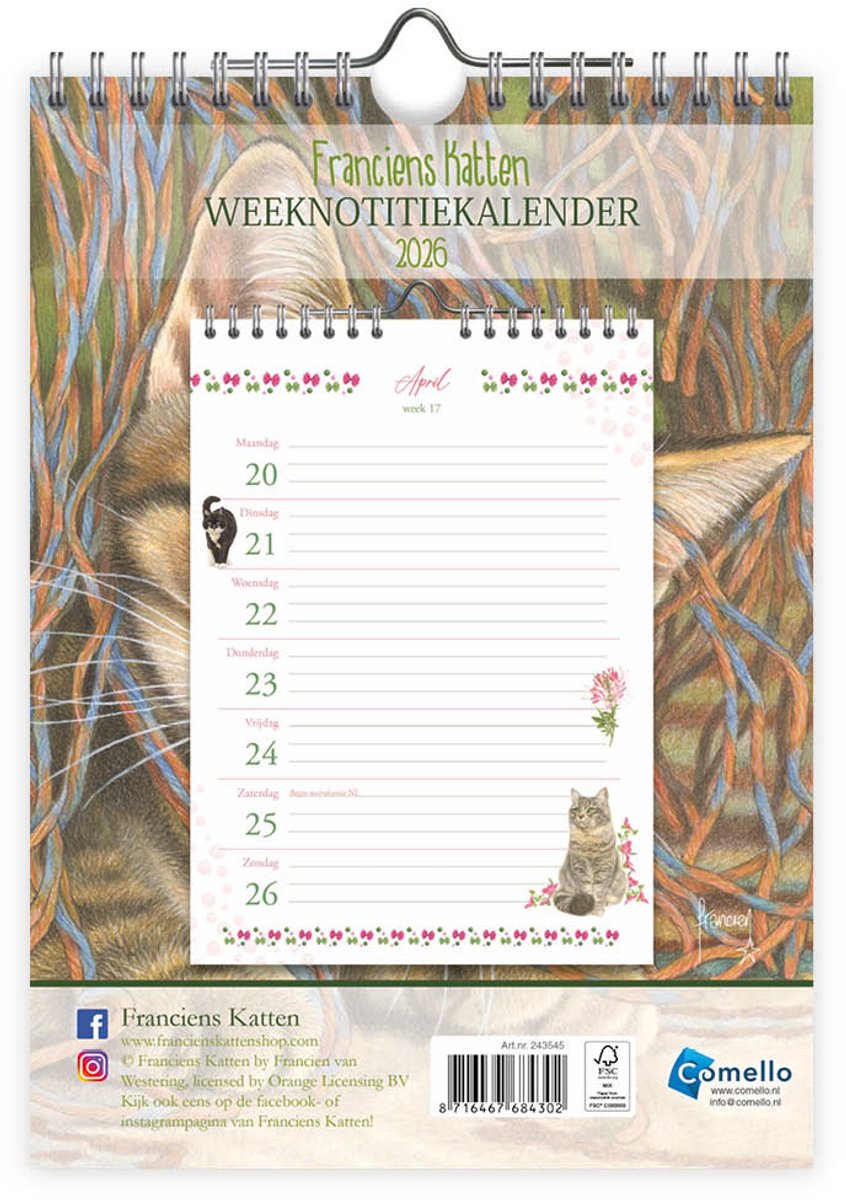 The Franciens Cats WEEKnotice Calendar Evi 2026 is the ideal calendar for cat lovers who like to keep track and enjoy heartwarming illustrations. With cat Evi as its shining centerpiece, this weekly calendar combines practical planning with Francien van Westering's signature drawings.