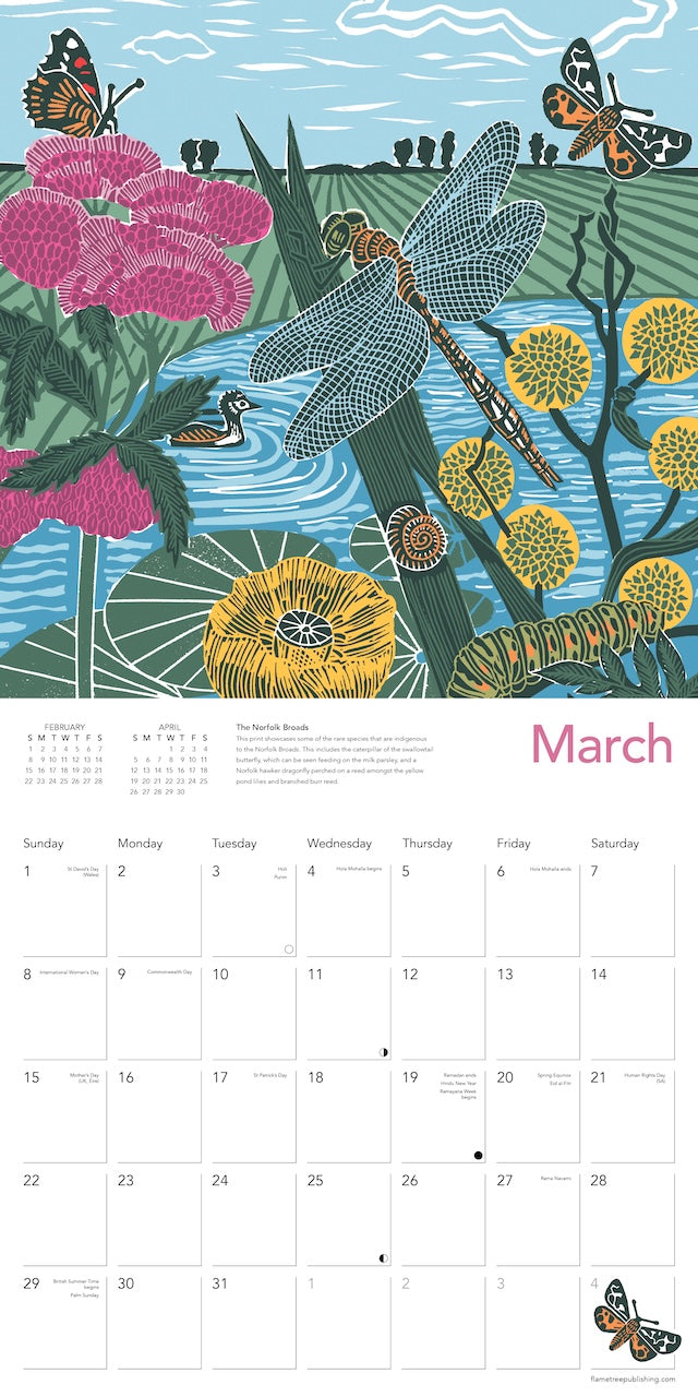 Every image is fresh, expressive and dynamic - from stylized fields of flowers to singing blackbirds among lush leaves. In short: a calendar that brightens your space and re-energizes each month. So: are you looking for art that combines nature and graphics? Then this is your ideal calendar.