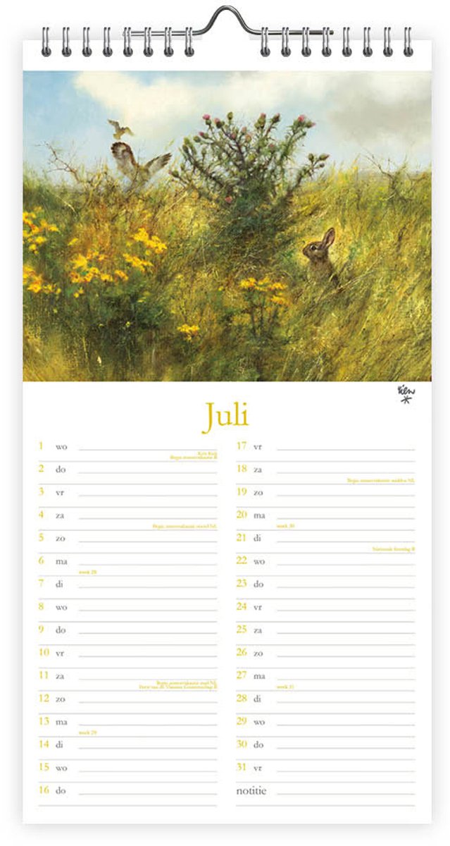 The calendar offers ample space for notes and features all Dutch and Belgian vacations and vacations. Thanks to the handy hanging system, the calendar is easy to hang in kitchen, study or hunting cabin. Perfect as a gift for nature lovers, hunters and admirers of Poortvliet's work.