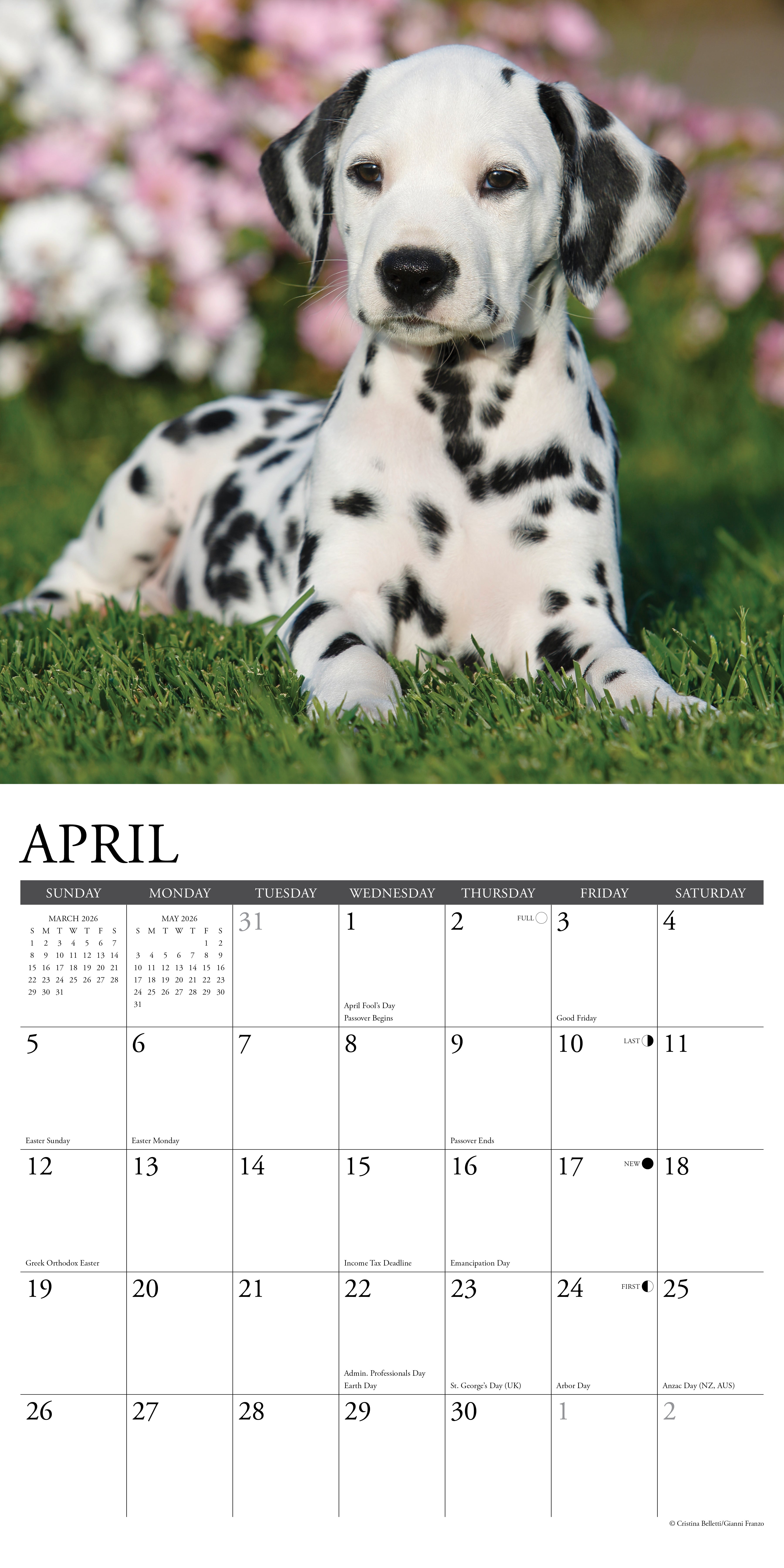 Calendario anual dálmata práctico y claro