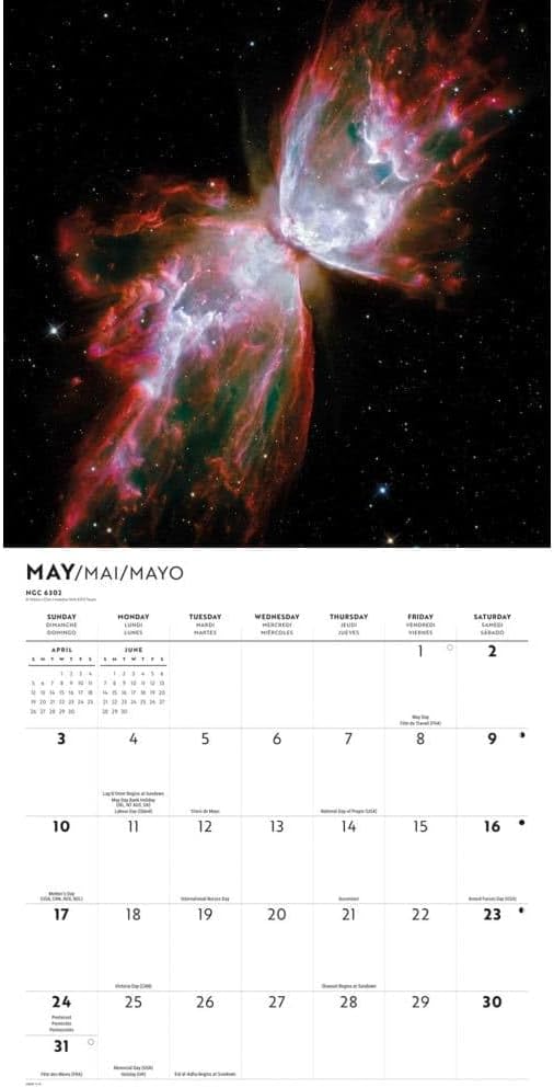 Niet alleen biedt deze kalender visuele escapades in de ruimte, maar ook structuur in je dagelijks leven. Daarom is hij ideaal voor thuis, op school of op kantoor. Met andere woorden: laat het universum je jaar begeleiden!
