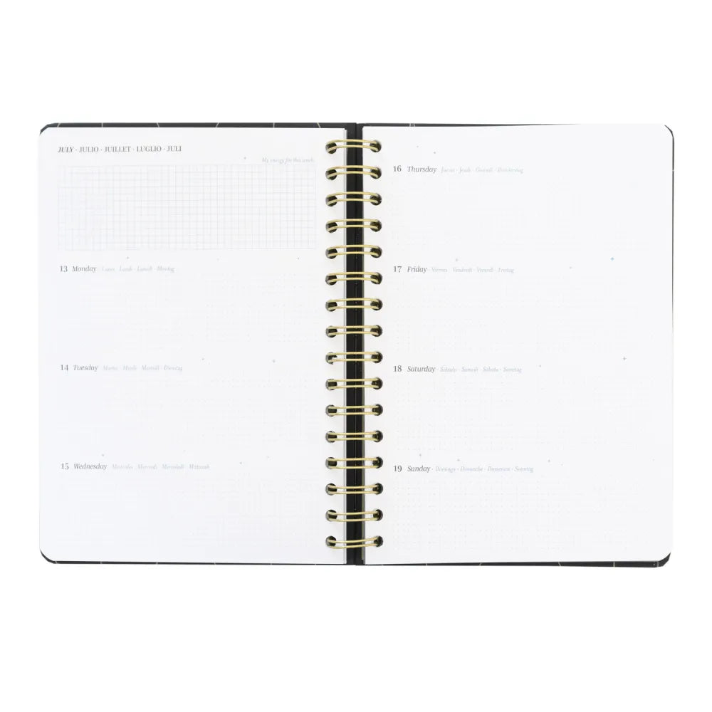 De Astral Agenda is een combinatie van praktische weekindeling en visuele verfijning. Bovendien: het gepersonaliseerde interieur, de stickervellen en de uitgestanste boekenleggers maken het plannen tot een ritueel met stijl.