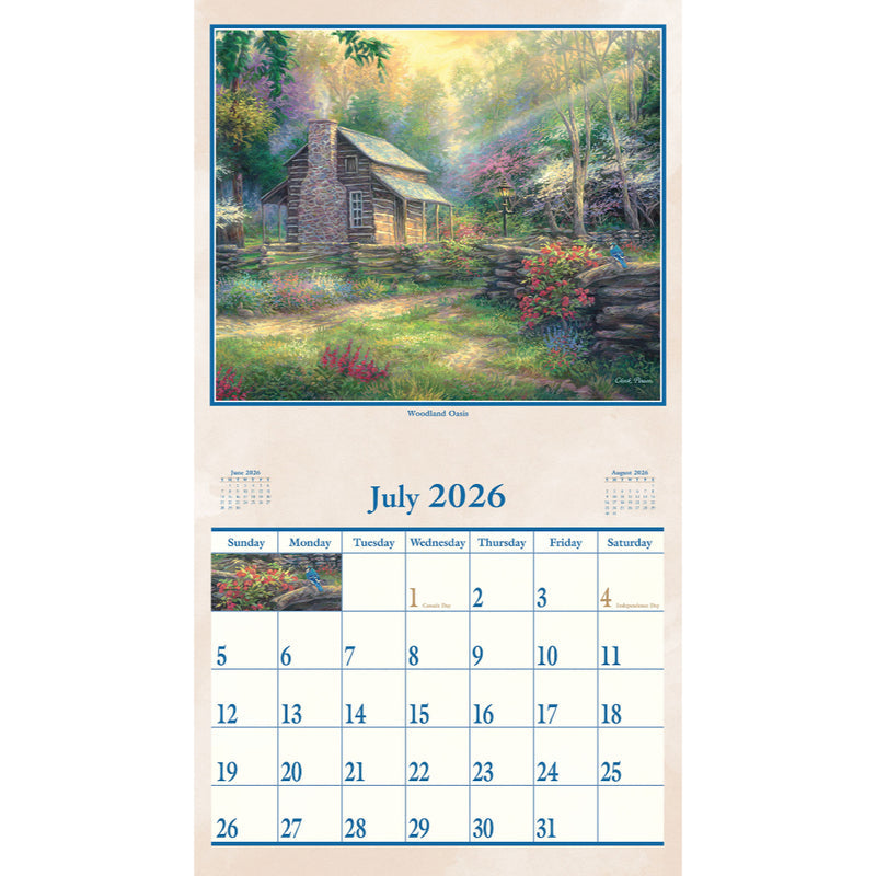 Le calendrier Country Living 2026 Pine Ridge est imprimé sur du papier luxueux à texture de lin, à partir d'une œuvre d'art originale de ; Chuck Pinson. Le calendrier commence en janvier 2026 et se poursuit jusqu'en décembre 2026. Chaque mois présente une grande image de Country Living avec les dates disponibles du mois en dessous avec un espace pour les notes personnelles et les anniversaires. Un certain nombre de fêtes importantes ont déjà été ajoutées au calendrier. Les textes du calendrier Country Living 12 mois de Pine Ridge sont imprimés en anglais. Déplié, le calendrier mesure environ 34 x 61 cm avec l'image en haut et les dates du mois en dessous.
