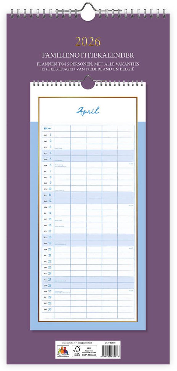 Le calendrier de notes familiales 2026 est l'un des calendriers les plus populaires aux Pays-Bas et constitue un moyen pratique de noter tous les rendez-vous familiaux, les activités scolaires, les horaires de travail et les entraînements sportifs.