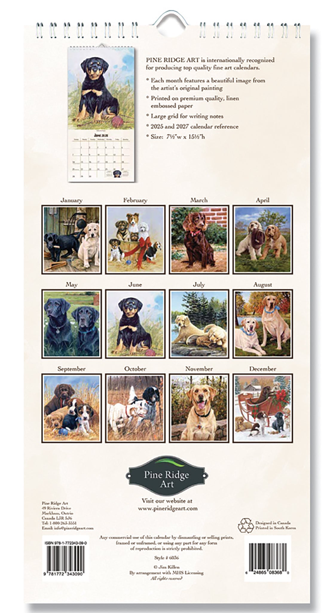 De Must Love Dogs Kalender is een hartverwarmende toevoeging aan keuken, kantoor, hal of praktijk. De kunst van Jim Killen vangt het karakter en de ziel van honden op een unieke manier, en brengt elke ruimte tot leven.