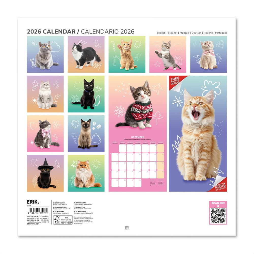 Le calendrier comporte au total 12 images différentes en couleur de 30 x 30 cm A partir de 2025, le calendrier mural comporte chaque mois une belle image différente en couleur de Chatons, un must pour les vrais amoureux.
