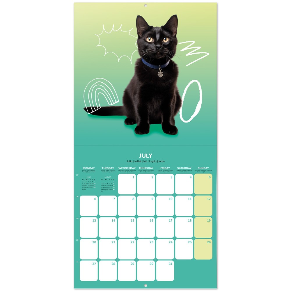 Ce magnifique calendrier Kittens 2025 Grupo est fait de papier glacé et commence en janvier 2025 et a une grande belle image des Kittens jusqu'en décembre 2025 avec les dates disponibles du mois en dessous avec beaucoup d'espace pour les notes personnelles et les anniversaires. Un certain nombre de fêtes importantes ont déjà été ajoutées au calendrier. Les textes du calendrier Kittens12 mois Grupo sont imprimés en anglais, espagnol, français, allemand, italien et portugais. Déplié, le calendrier mesure environ 30 x 60 cm, avec l'image en haut et toutes les dates du mois en dessous.