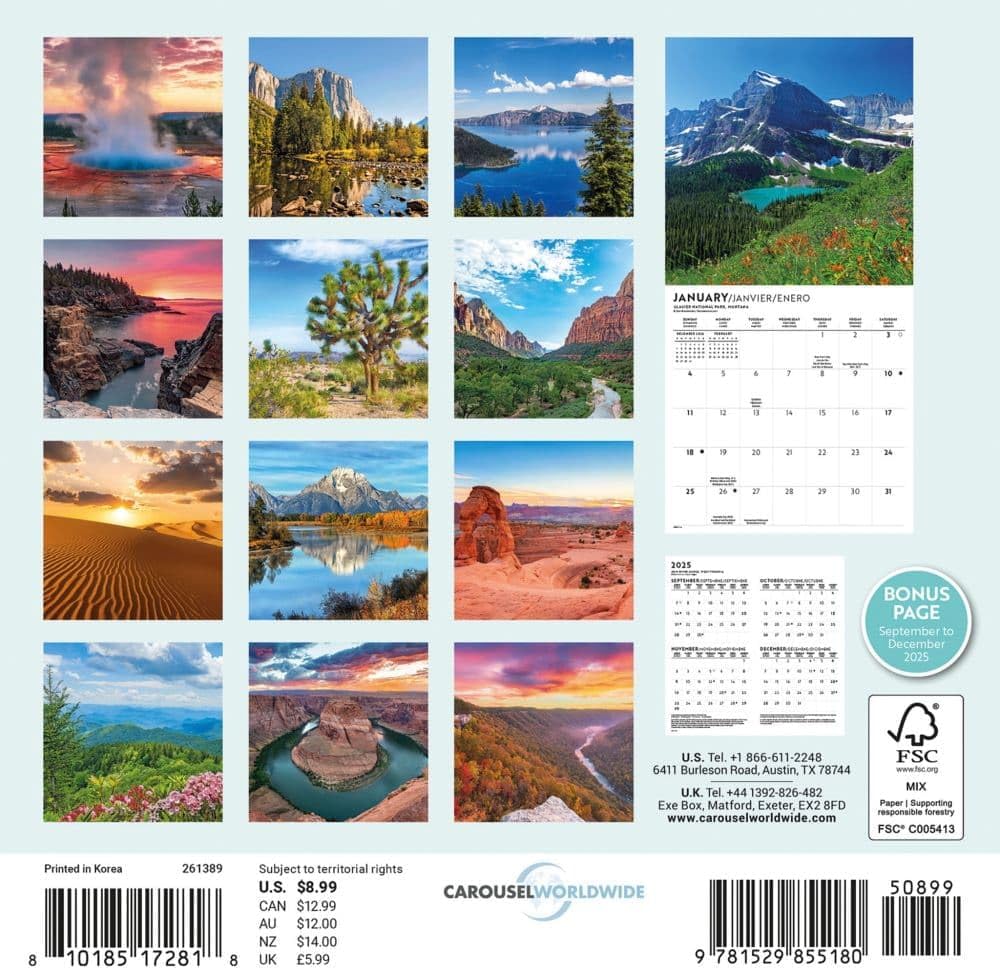Specificaties van de National Parks Kalender 2026 Mini