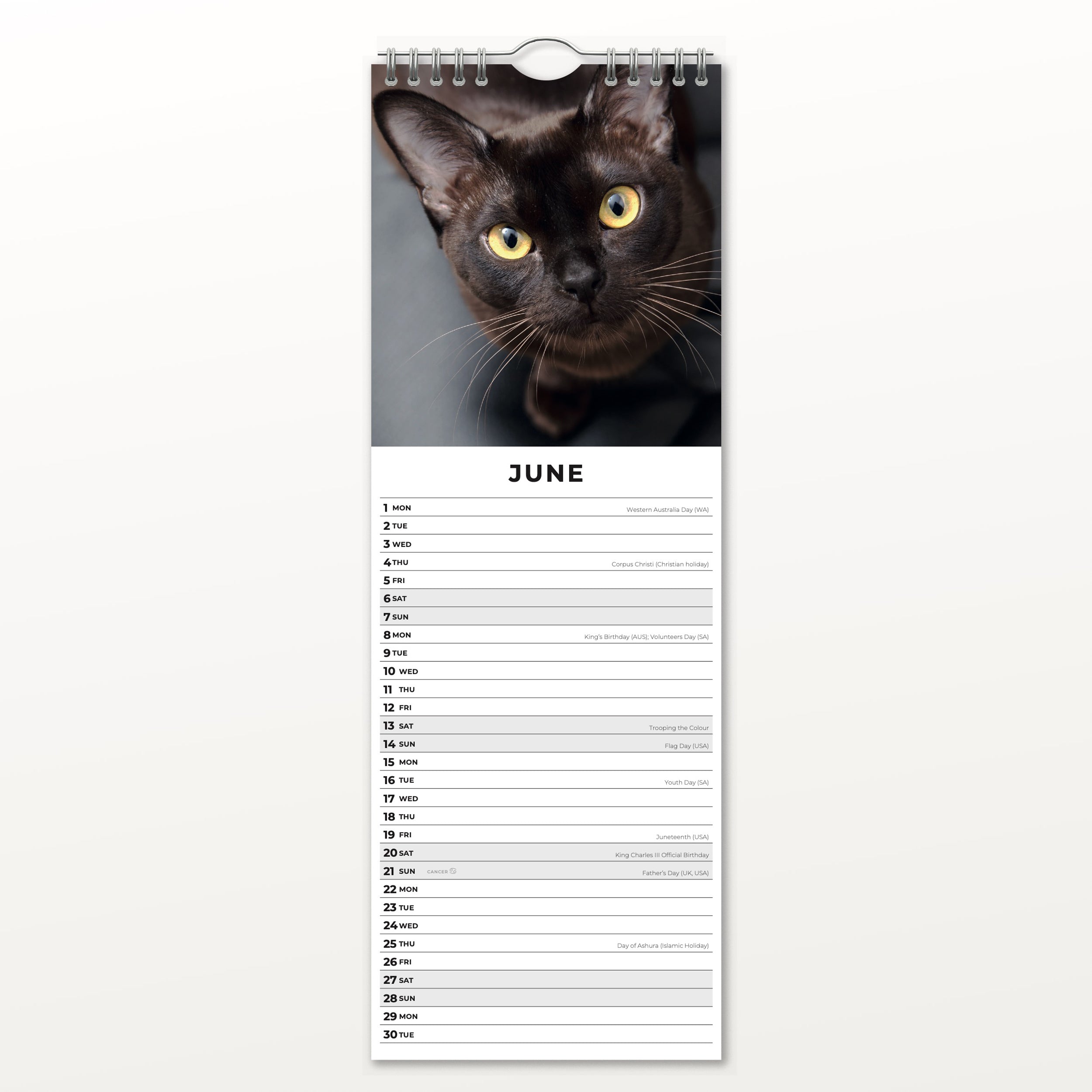 Bovendien is deze kalender met zijn formaat van 41 x 15 cm ideaal voor smalle wandruimtes zoals gangen, keukens of bureaumuren. Dus: altijd ruimte voor een glimp van elegantie, hoe klein de plek ook is. Kortom: een slimme én sfeervolle keuze voor elke kattenliefhebber.