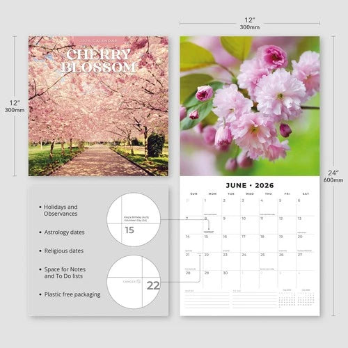 Il Calendario della fioritura dei ciliegi 2026 presenta 13 foto a colori di 30 x 30 cm, ognuna delle quali è stata accuratamente selezionata per la sua estetica e la sua stagionalità. Pensa: