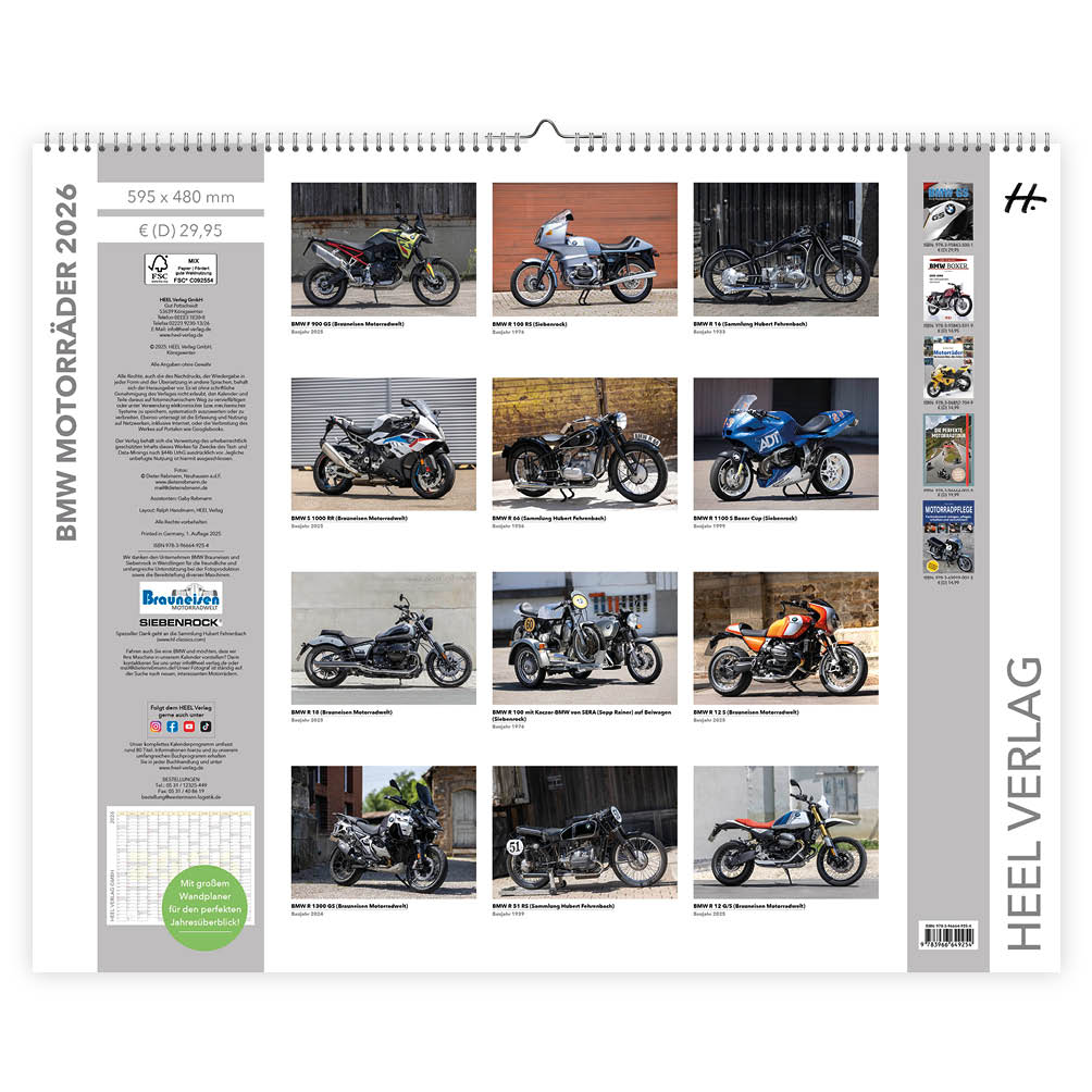 Met een royaal formaat van 48 x 59,5 cm is deze kalender een echte blikvanger aan de muur – perfect voor motorliefhebbers, verzamelaars en fans van het merk BMW.
