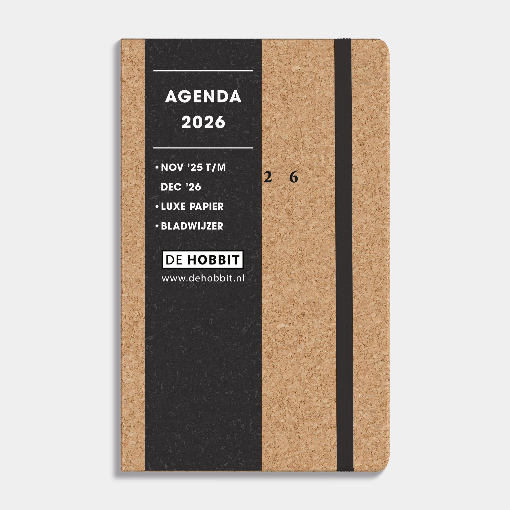 Deze compacte luxe A6 agenda 2026 straalt klasse uit dankzij de harde cover in kurk met afgeronde hoeken. Het jaartal 2026 is stijlvol aangebracht in glanzende goudfolie, terwijl het prachtige crèmekleurige papier zorgt voor een warme en luxueuze uitstraling.