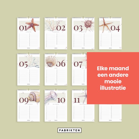 De Verjaardagskalender Strand in A4 formaat helpt je moeiteloos alle verjaardagen te onthouden dankzij de ruime schrijfruimte van 7.7 cm. Ideaal om verjaardagen en bijzondere momenten overzichtelijk en in een rustige, zomerse sfeer bij te houden, het hele jaar door.