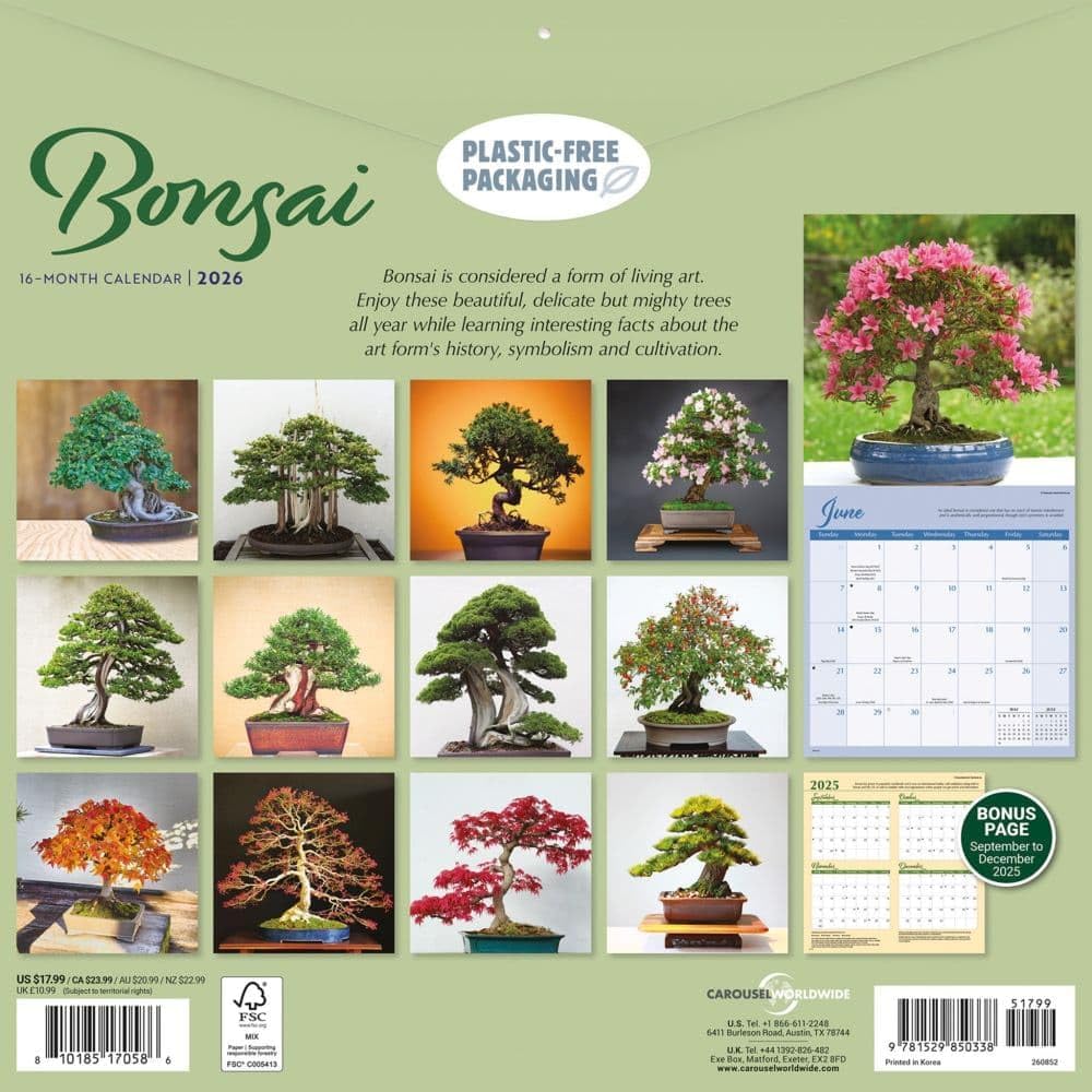 Specificaties van de Bonsai Kalender 2026