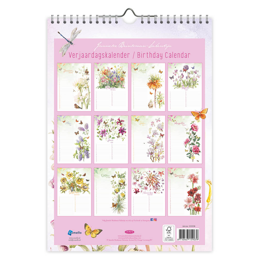 Bestel Nu de Janneke Brinkman A4 Verjaardagskalender Pioenroos