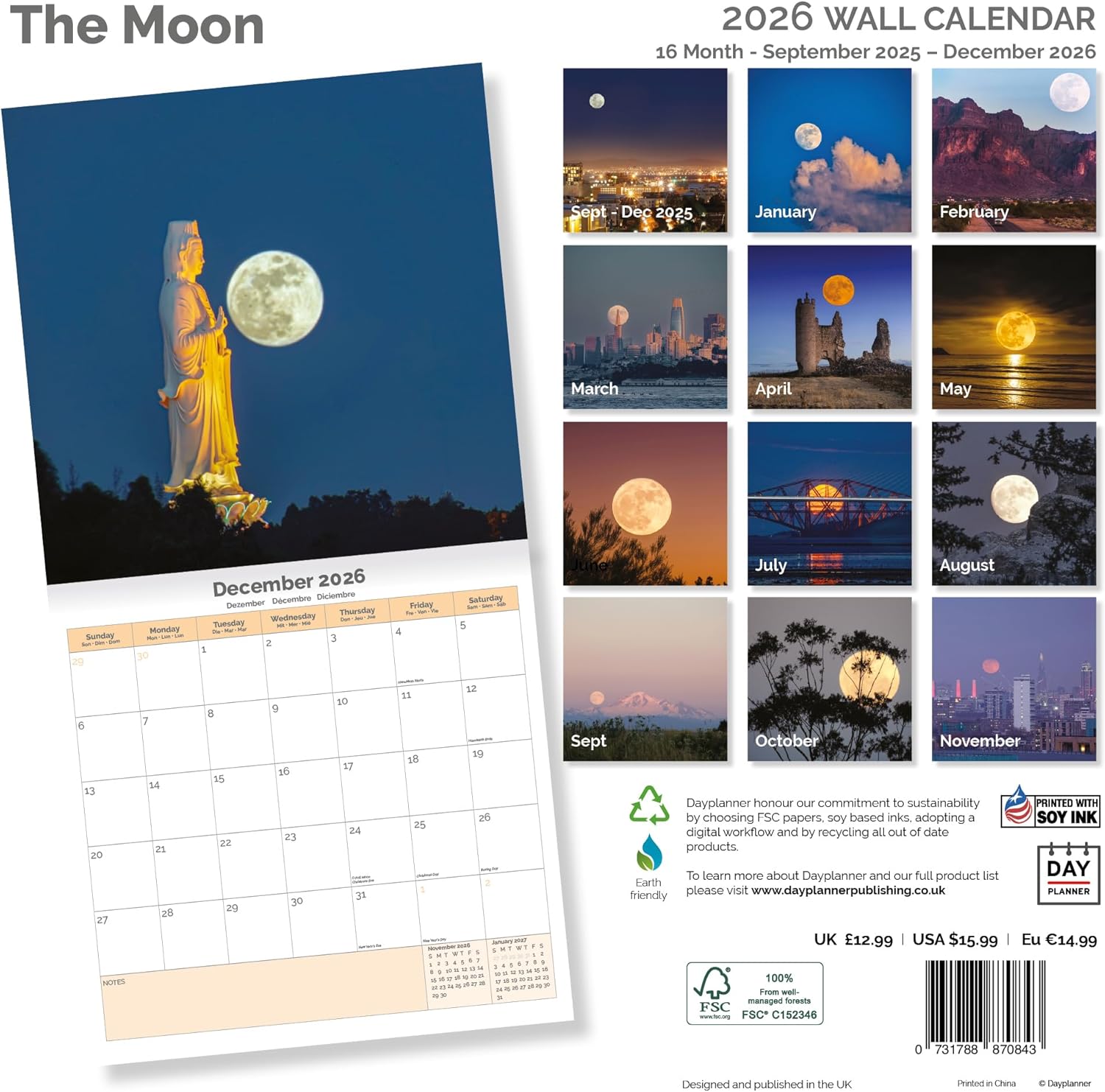 Of je nu gefascineerd bent door volle manen, maansverduisteringen of de subtiele schoonheid van de wassende maan – deze kalender laat je het hele jaar door genieten van de magie van de nachtelijke hemel. Bovendien: hij is volledig Engelstalig, start op zondag, loopt 16 maanden én is duurzaam geproduceerd. Een hemelse én verantwoorde keuze dus!