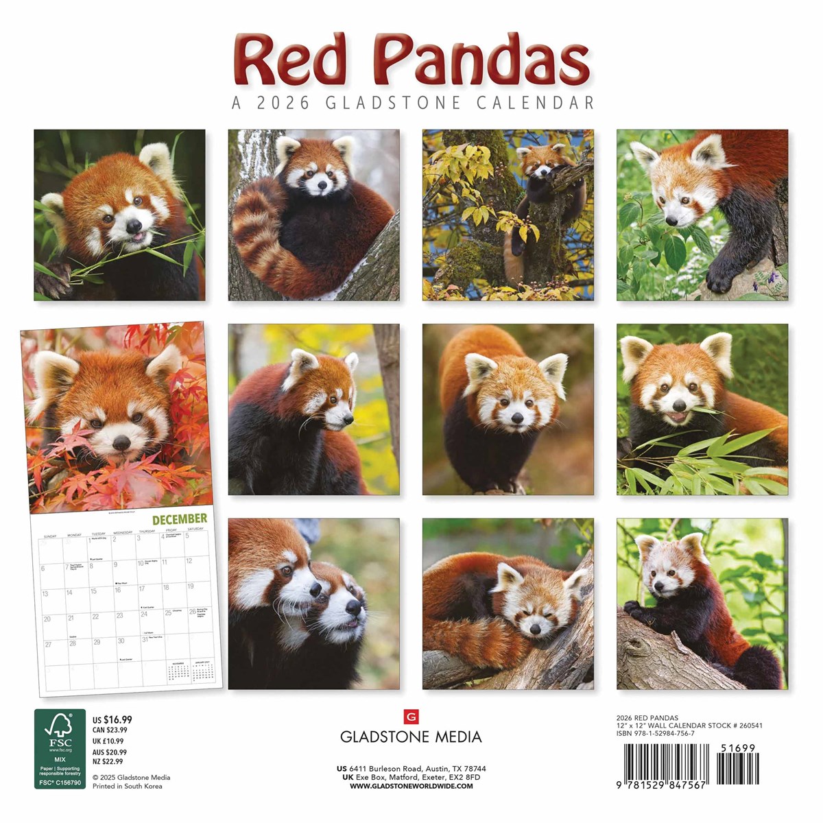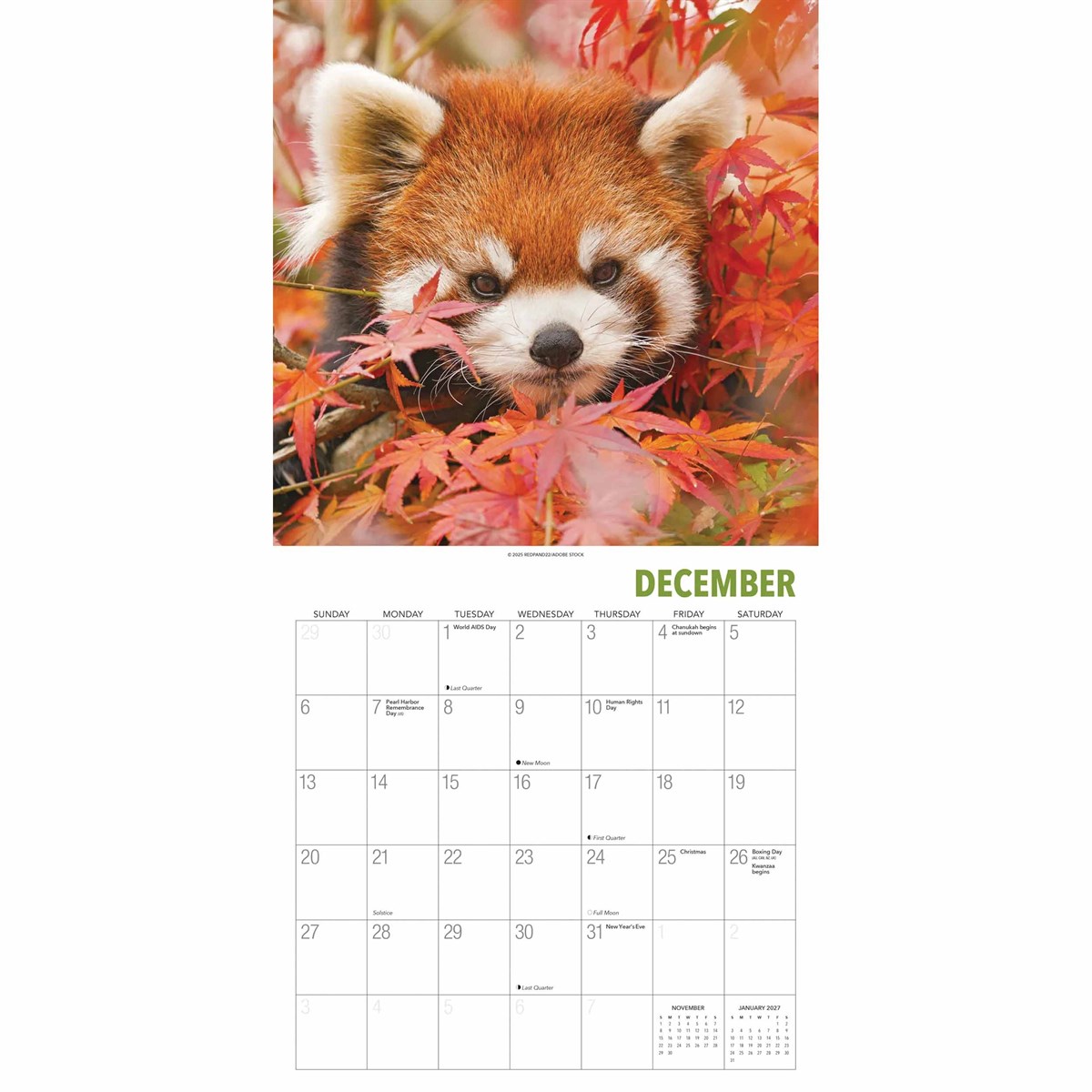 Specificaties van de Rode Panda Kalender 2027